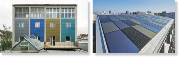 Das alte Kohlesilo auf dem Areal der Maschinenfabrik Sulzer und Burckhardt in Basel wurde modernisiert. Das Gebäude beherbergt heute Geschäftsräume und im Zuge dieses Umbaus wurden Fassade und Dach mit PV-Modulen verkleidet, welche in einem gemeinsamen Forschungsprojekt vom Amt für Umwelt und Energie des Kantons Basel-Stadt und vom Bundesamt für Energie zusammen mit der Fachhochschule Nordwestschweiz (FHNW) untersucht werden. Der produzierte Strom wird in «2nd Live»-Akkus - ausrangierten Lithium-Ionen-Batterien der Elektromobilität - gespeichert, um später von den Arealbewohnern genutzt zu werden. Die Anlage produziert mit ihren horizontal und vertikal angelegten Solarmodulen jährlich 16'400 kWh Solarstrom. Die Solar-Module sind farbig und dadurch in der Lage, sich der Optik eines Gebäudes anzupassen, ohne aufzufallen. Der Turm des ehemaligen Kohlesilos wurde hingegen auffällig vierfarbig verkleidet, um den Einfluss der Farbe auf die Stromproduktion besser untersuchen zu können. Er wurde 2015 mit dem Schweizer Solarpreis ausgezeichnet.